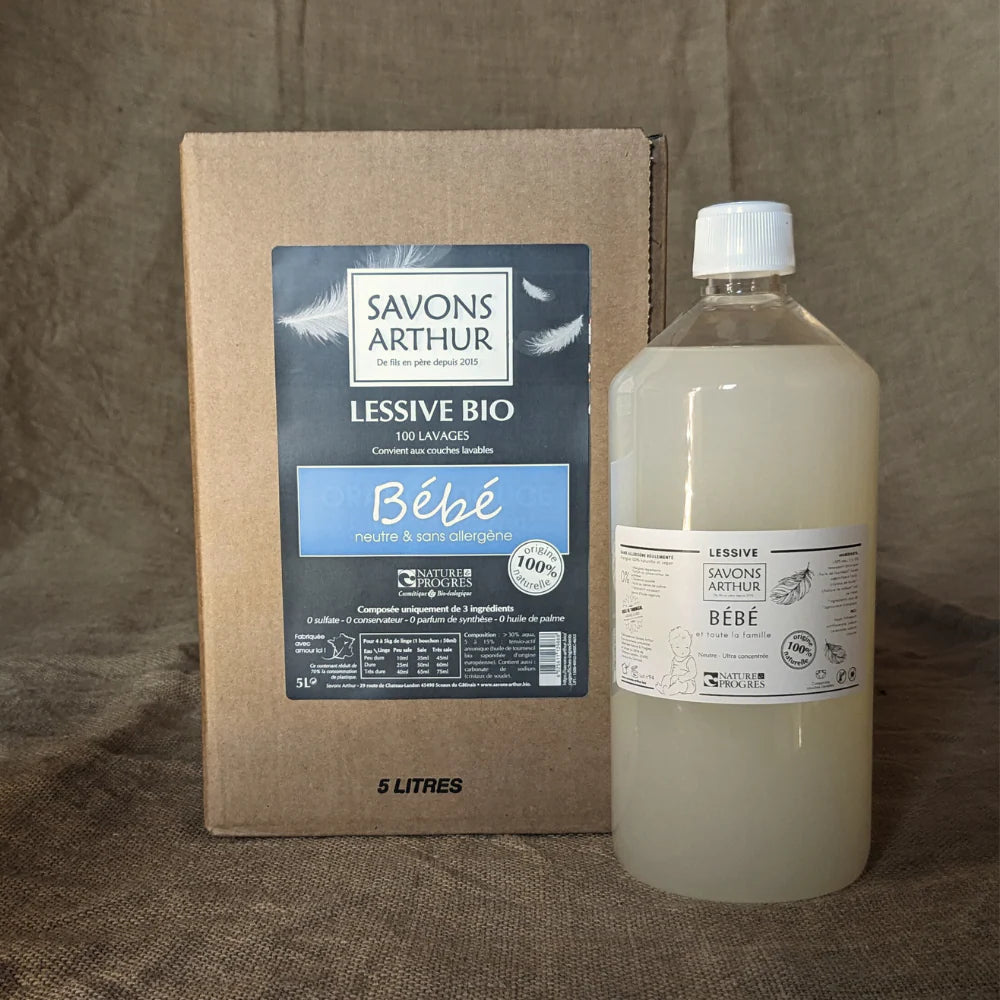 Lessive bio 1L – Savon Arthur – 100% naturelle, composée de 4 ingrédients simples et bons pour bébé et la planète.
